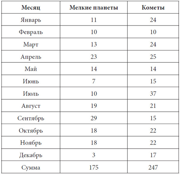 Астрономические открытия, которые мы отделили от предыдущих на том основании, что время, когда они сделаны, известно с большей точностью (что особенно важно для нашей цели), точно так же распределяются неравномерно по временам года: