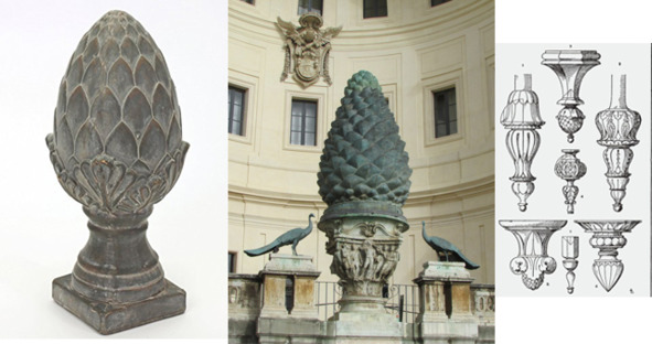 Сосновая шишка (шишка пинии) оформляющая навершие «кадуцея» является важным символом и главной скульптурой украшающей вход в Апостольский дворец, который является уникальной «кладовой» Ватикана с её знаменитой библиотекой. Внутренняя часть музейного комплекса Ватикана называется в честь многотонной четырехметровой бронзовой статуи «Giardino della Pigna» – «Двор сосновой шишки», во всем архитектурном комплексе она занимает центральное, главное место! Как ни странно, во внутреннем дворе, который был спроектирован архитекторами специально для нее, не нашлось места ни для Животворящего Креста, ни для статуи Девы Марии, ни для Христа с его апостолами. Размер и расположение бронзовой шишки говорит нам о том, что она занимает более почётное, преемственное положение, нежели все остальные идолы человечества. Но это еще не все загадки, которые присутствуют во дворе музейного комплекса Ватикана! Загадочный элемент «кадуцей» пришёл к нам из далекой древности. Атрибутом правителей древнего Египта был жезл подобный тирсу, увенчанный чем-то похожим на шишку, в древнем Египте находит свои истоки и медицина. Медицина и шишка пинии имеют непосредственную взаимосвязь, мы постепенно приближаемся к разгадке!