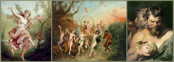 «ДИОНИС, Бахус, Вакх, Пан… в греческой мифологии бог плодоносящих сил земли, растительности, виноградарства, виноделия. Опьяняющий, одурманивающий человеческий Разум повелитель иллюзий. Бог веселья, радости, буйства. Дионис символизирует противоположность небесного и земного начал. Дионис – это избыток, нарушение всякой меры, безмерное, взрывчатое буйство. Дионис символизирует ужас (панику) и „восторг“: чудовищный ужас, охватывающий человека, усомнившегося в формах познания явлений». Фридрих Ницше.