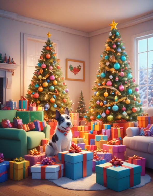 Вечер был тихим и снежным. Даб-Даб сидел в уютной гостиной, украшая ёлку разноцветными шарами и гирляндами. За окном кружились снежинки, а в камине потрескивали дрова. Вдруг раздался звонок.