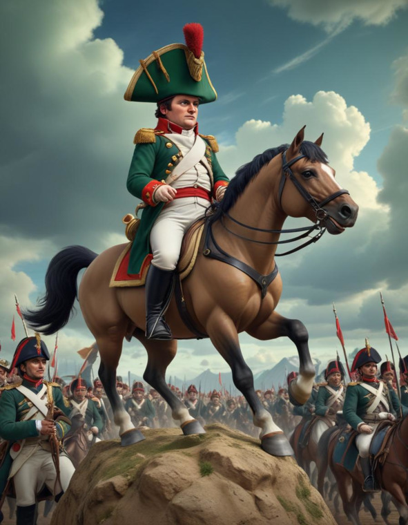 В нашем уютном городке, где дома были украшены резными ставнями, а улицы вымощены булыжником, жил старичок по имени Дабыл-Дабылдыч. Он был человеком необычным, с седой бородой, которая казалась такой же древней, как и его истории. Дабыл-Дабылдыч был известен своими невероятными рассказами о дальних странах и необычных существах. Но однажды, подстригая свои кусты, он решил, что пора совершить путешествие во времени к одному из самых известных генералов – Наполеону Бонапарту. Собрав свою машину времени, работающую на энтузиазме и щепотке стратегии, он отправился в эпоху, где каждый шаг мог изменить ход истории.