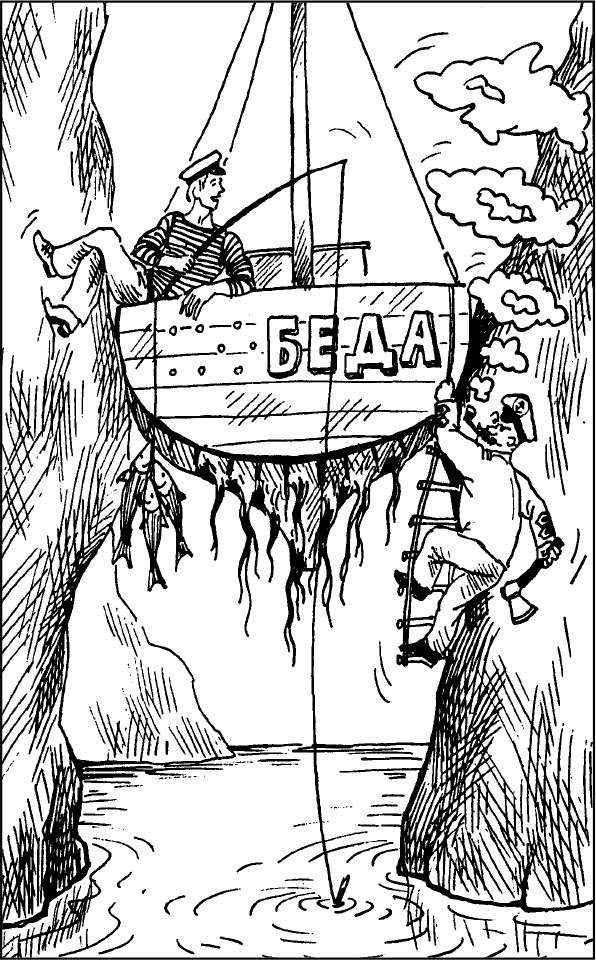 Вылезли, отдышались, осмотрелись кругом. Положение, доложу вам, безвыходное: с трех сторон огонь, с четвертой – крутая скала… Я посмотрел вниз – высоко, даже дух захватило. Картинка, в общем, безрадостная, и единственное отрадное пятно на этом мрачном горизонте – наша «Беда» красавица. Стоит как раз под нами, чуть качается на волне и мачтой, как пальчиком, манит к себе на палубу.