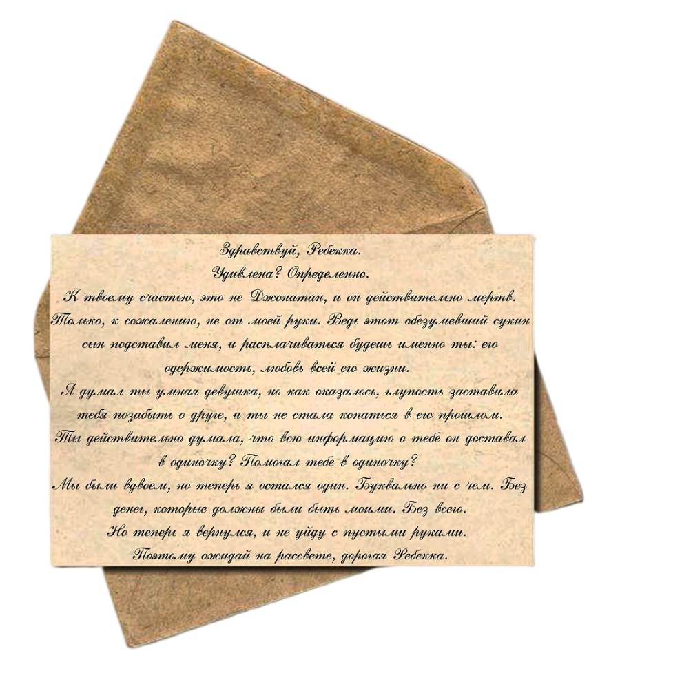 Но когда начинаю читать строки, гнев и негодование вспыхивает внутри. Каждая строчка, каждое слово, буква в этом письме вызывает желание крушить и разрушать все вокруг. Это не может быть повторением истории. Слова в письме погружают меня во тьму, которую успела позабыть и отпустить. Но она уверено и быстро возвращается во время прочтения письма: [1[1]1