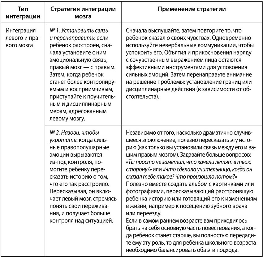 Наше преданное служение делу помощи детям в развитии полноценной психики и эмпатических взаимоотношений начинается дома. Мы безмерно благодарны не только нашим собственным родителям, но и нашим супругам, Кэролин и Скотту, чья мудрость и прямой редакторский вклад вплетены в эти страницы. Наши супруги являются для нас не только лучшими друзьями, но и лучшими сотрудниками, они помогали нам писать и переписывать многочисленные черновики, делились собственным литературным талантом и родительской мудростью. Без них этой книги не было бы. Скотт щедро приложил свой глаз профессора английского языка, писательский ум и перо редактора, чтобы сделать эту книгу более гладкой и ясно читающейся. Эти семейные усилия наиболее полно выражаются в нашей профессиональной жизни через наших детей – наших лучших учителей, – чья любовь и игривость, эмоции и преданность вдохновляли нас так, что не описать словами. Мы благодарны им от всей души за возможность быть их родителями. Именно их исследование множества измерений своего развития побудило нас поделиться с вами идеями об интеграции. Поэтому мы с любовью посвящаем книгу своим детям. В надежде, что она позволит и вам, и вашим детям вместе идти по пути интеграции, здоровья и благоденствия.