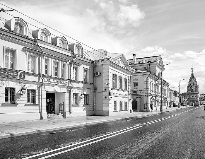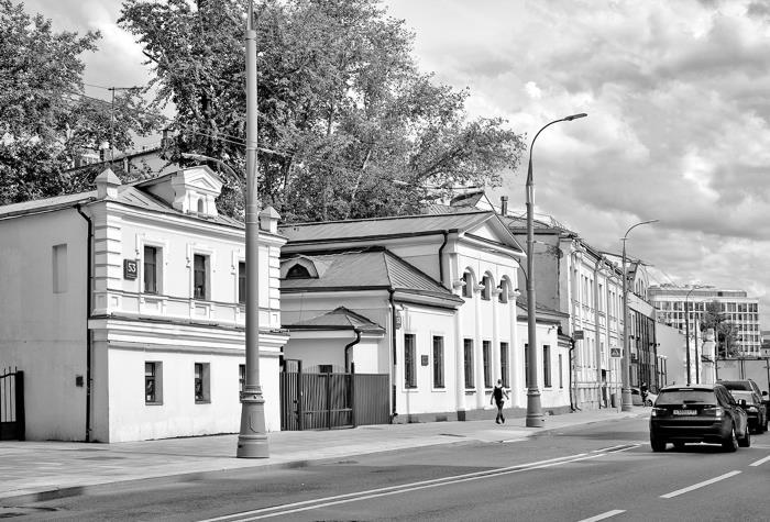 Наконец мы вступили на Большую Полянку. Как было сказано выше, начало прогулки будет сопровождаться рассказом о череде невосполнимых потерь. Речь идет не о рядовых утратах – разрушенные здания считались бы сегодня значимыми достопримечательностями и заняли бы заслуженное место на страницах любого путеводителя по Замоскворечью. Для строительства многоэтажного жилого дома (Большая Полянка, № 1/3), который словно нависает над улицей, Кадашевской набережной и Малым Каменным мостом, пожертвовали двумя прекрасными дореволюционными усадьбами. При этом часть одной из них отошла под расширение проезда и транспортных развязок. О советской многоэтажке мы еще поговорим отдельно, но прежде узнаем об утраченных владениях.