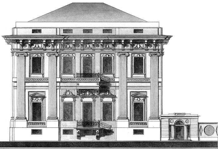 Дом Прозоровского. Парадный фасад. Страница из «Альбома партикулярных строений» М.Ф. Казакова. 1800-е гг.