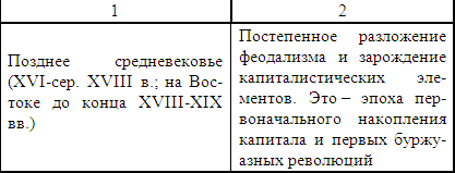 Многие проблемы истории экономики феодализма достаточно дискуссионны, в частности его периодизация. В последнее время наибольшее распространение получило выделение следующих этапов (табл. 2).