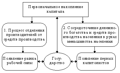 Первоначальное накопление капитала – исторический процесс превращения общественных средств производства и жизненных средств в капитал, а непосредственных производителей – в наемных рабочих.