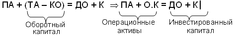 Для баланса в вертикальном формате с выделением инвестированного (вложенного) капитала балансовое уравнение будет иметь вид: