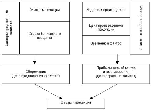 А. Маршалл анализирует процесс инвестирования как часть более общей проблемы – механизма функционирования рынка капитала. Рынок капитала представлен взаимодействием спроса и предложения, учетом факторов, оказывающих влияние на формирование каждого из указанных элементов. Причем субъектами спроса и предложения капитала являются различные лица, имеющие различные мотивации своей деятельности.
