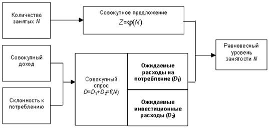 в) от объема инвестиций D2. Этот вывод, по утверждению Кейнса, и представляет суть общей теории занятости.