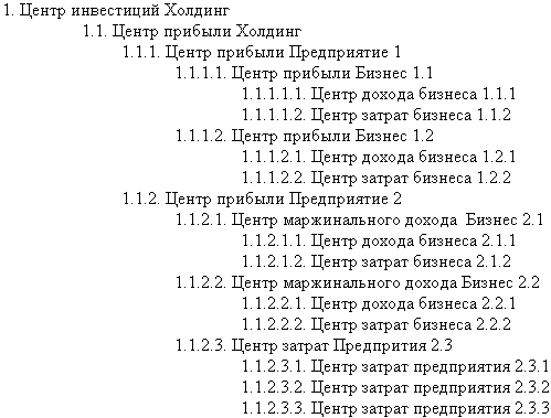 Сами Центры дохода могут иметь свою внутреннюю иерархию, например, ЦФО дохода «Коммерция» имеет два подчиненных ЦФО дохода – ЦФО продаж региона "А" и ЦФО продаж региона "Б".