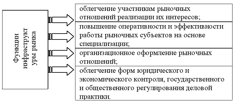 Инфраструктура рыночной экономики – это совокупность связанных между собой специализированных институтов, действующих в пределах особых рынков и выполняющих определенные функции по обеспечению нормального режима их функционирования. Под институтами инфраструктуры рынка понимается совокупность предприятий, обеспечивающих функционирование рыночных отношений, успешную деятельность всех видов рынка. При этом инфраструктурная деятельность включает: