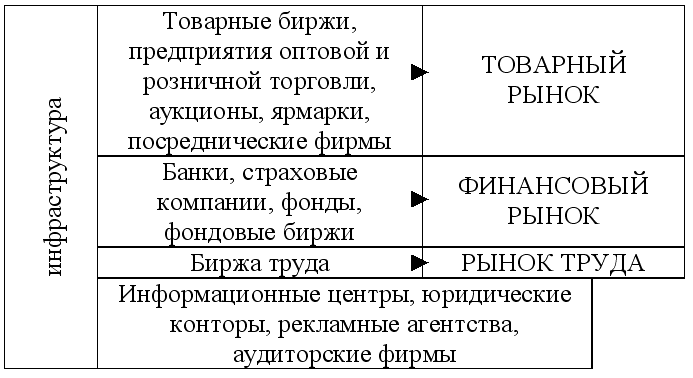 Рынок как развитая система отношений товарного обмена представляет собой систему отдельных взаимосвязанных рынков, а значит, имеет собственную структуру и инфраструктуру.