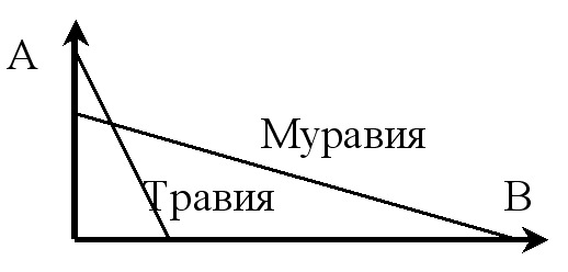 1. Пусть две страны Травия и Муравия выпускают товары А и В, кривые производственных возможностей которых показаны на рисунке. Можно ли на основании этих данных сделать вывод о том, что альтернативная стоимость производства товара А выше в Травии, чем в Муравии?