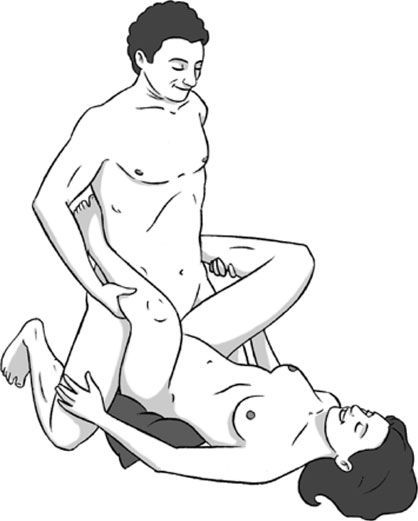 Илл. 4.1. Средняя позиция, мужчина стоит на коленях (ягодицы женщины приподняты с помощью подушки)