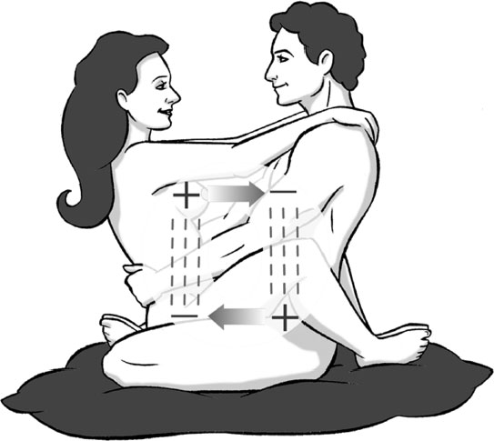 2. Найдите каждый у себя полюс с положительным зарядом – у мужчины он находится в промежности (у основания пениса), а у женщины – в области груди, особенно у сосков.