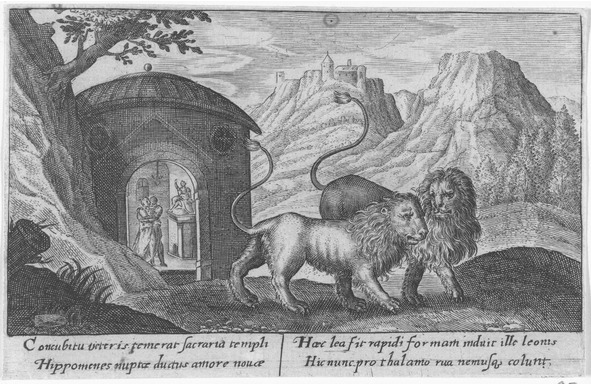 Со львами, запряженными в повозку Кибелы, связана легенда о прекрасной бегунье, принцессе Аталанте и влюбленном в нее Гиппомене (в другой версии Меланионе). Аталанта пообещала выйти замуж только за того, кто сможет победить ее в беге. В этом испытании Гиппомену помогла богиня любви Афродита. Она подарила ему три яблока, научив бросить их перед Аталантой во время соревнования, зная, что девушка непременно их поднимет. Так и произошло, но радостный юноша забыл поблагодарить Афродиту. В наказание богиня вызвала у него непреодолимую страсть к Аталанте как раз тогда, когда молодая пара проходила возле храма Кибелы. Юноша овладел в нем Аталантой, и оскорбленная Кибела превратила их во львов, которых запрягла в свою повозку. Превращение влюбленных во львов стало жестокой карой, так как считалось, что львы могли спариваться только с леопардами, но не между собой.