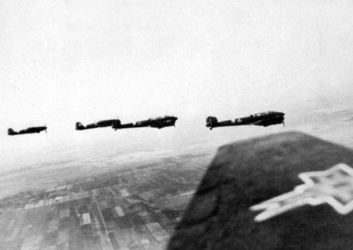 «На обратном пути от Киева соединение Ju88 вынуждено было разомкнуть строй из-за сильной облачности. Многочисленные вражеские истребители попытались атаковать нас западнее Днепра. Они добились нескольких попаданий в мой самолет. От одного истребителя, настойчиво преследовавшего «юнкерс» сзади и слева, я попытался уклониться левым боевым разворотом с резким набором высоты.
