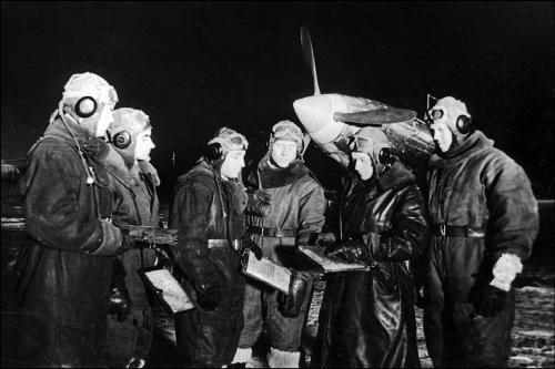 Летчики-ночники уточняют боевую задачу у МиГ-3