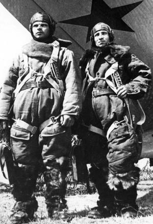 Ст. лейтенант В.А. Лобозов и лейтенант Ф.В. Долгих после налета на Констанцу