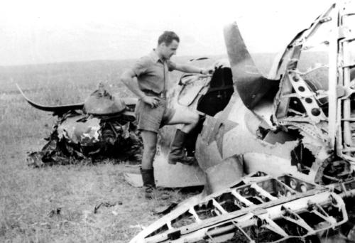 Мл. лейтенант Д.А. Зайцев из 2-го иап (слева) вернулся из очередного вылета