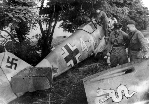 Политработники осматривают Bf109F-2 № 8980, который пилотировал обер-фельдфебель Х. Шмидт из 3/JG3. 20 июля он был сбит западнее Киева и попал в плен