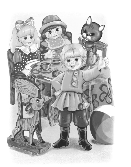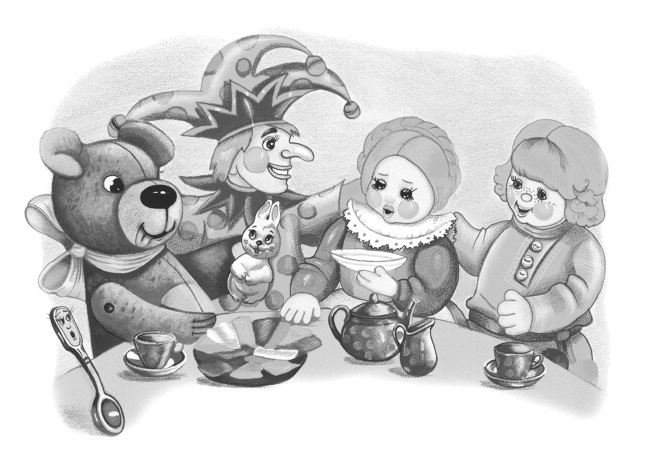 Аня и Катя смеялись тонкими голосками, неуклюжий Медведь танцевал с Метёлочкой, серенький Козлик гулял с Уточкой-хохлаткой, Клоун кувыркался, показывая своё искусство, а доктор Карл Иваныч спрашивал Матрёну Ивановну: