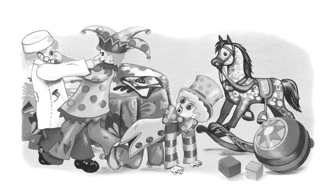 Праздник начался отлично. Бил барабан сам собой, играли сами трубы, жужжал Волчок, звенел своими тарелочками Клоун, а Петрушка неистово пищал. Ах, как было весело!..