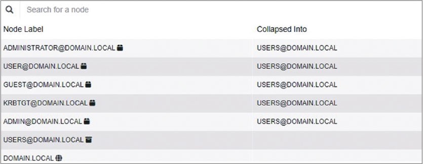 Рядом с каждым именем есть иконка, обозначающая метку узла. В колонке Collapse Info показывается, в какую группу собраны узлы.