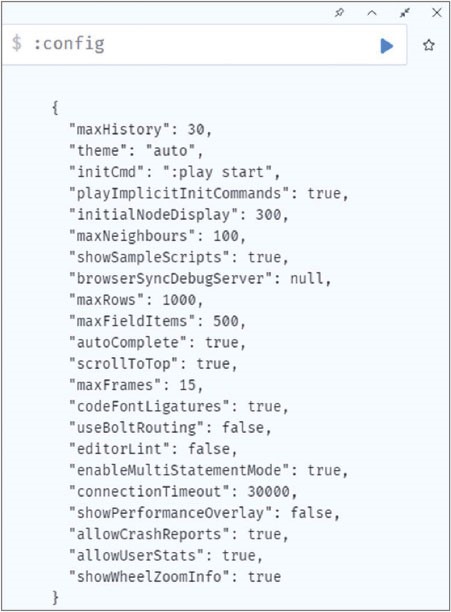 ● Первоначальная команда для выполнения (Initial command to execute) – команда, которая будет выполняться при запуске браузера neo4j. Команды начинаются с двоеточия. Например, можно вызывать историю команд :history или подсказку по командам :help.