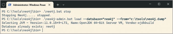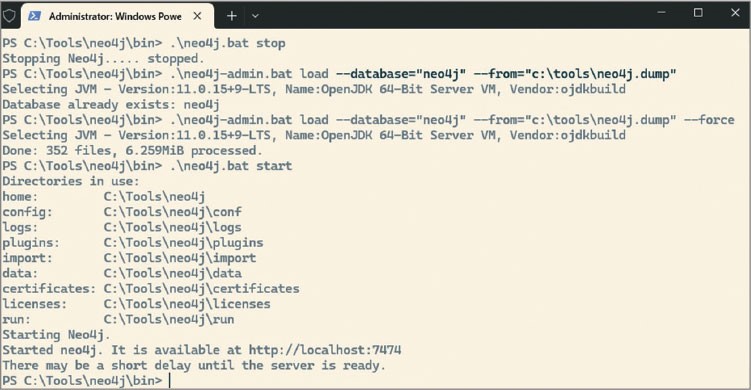 После успешного восстановления из резервной копии запустим neo4j: