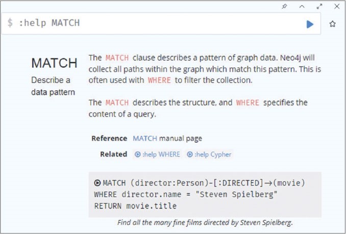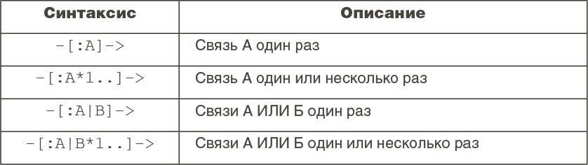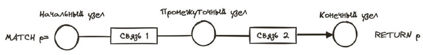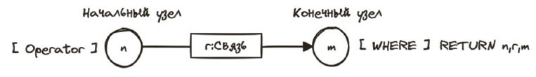 Возвращаясь к рисунку 3.2, получаем следующий формат: на первом месте идет оператор MATCH, MERGE и др., следующим – начальный узел, затем название связи (опционально), конечный узел, условия (опционально), и завершается запрос оператором RETURN. В некоторых случаях оператор RETURN может опускаться, например при добавлении свойства узлу, или заменяться оператором WITH, если необходимо изменить область видимости.