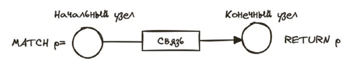Cypher представляет собой удобочитаемый и мощный декларативный язык запросов, и главное – понять логику их составления. У нас есть начальный узел и конечный, которые соединены между собой связью. Этот граф является шаблоном, по которому будет выполняться выборка из базы данных.