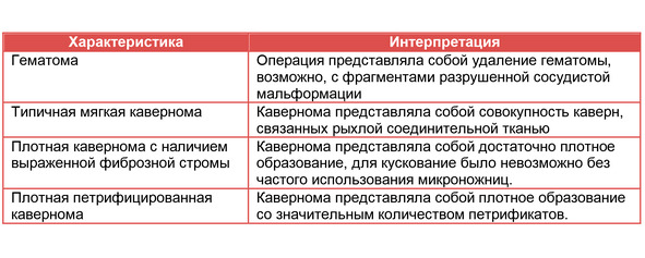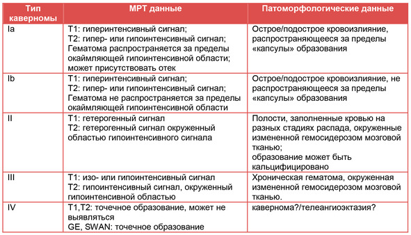 Таблица 10. Типы каверном на МРТ по Zabramski и соавт. [138].