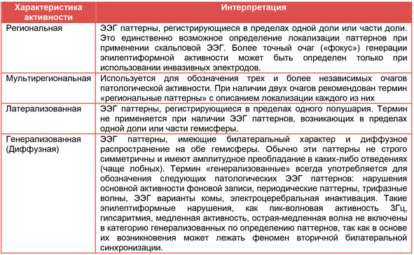 Таблица 12. Определение локализации ЭЭГ паттернов [6, 79, 80].