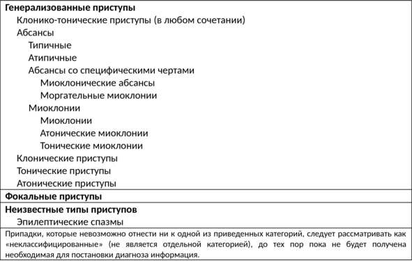 Таблица 5. Классификация эпилептических приступов согласно рекомендациям международной противоэпилептической лиги (2010 год).