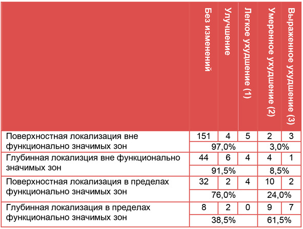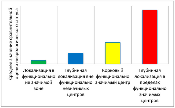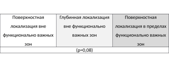 Таблица 38. Распределение сравнительных оценок неврологического статуса в зависимости от локализации.