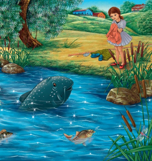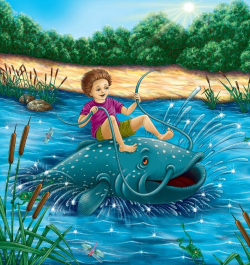 Так они и стали друзьями. Каждый день Ванечка бегал на берег озера поболтать с мудрым сомом. А тот катал его на своей спине вдоль берега и рассказывал удивительные истории про подводную жизнь.