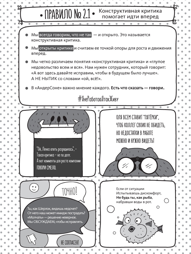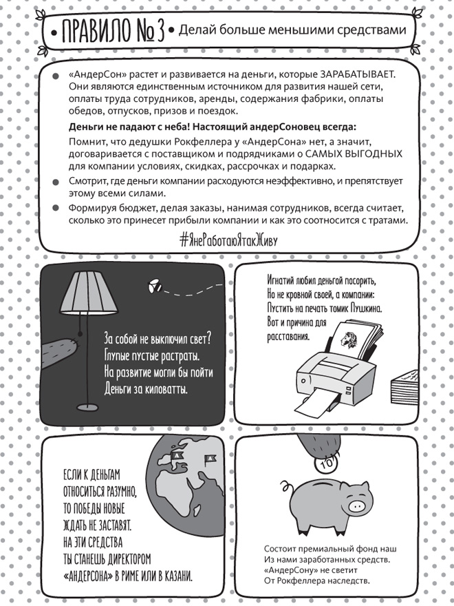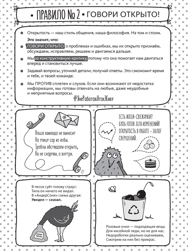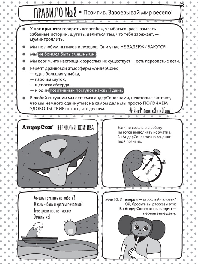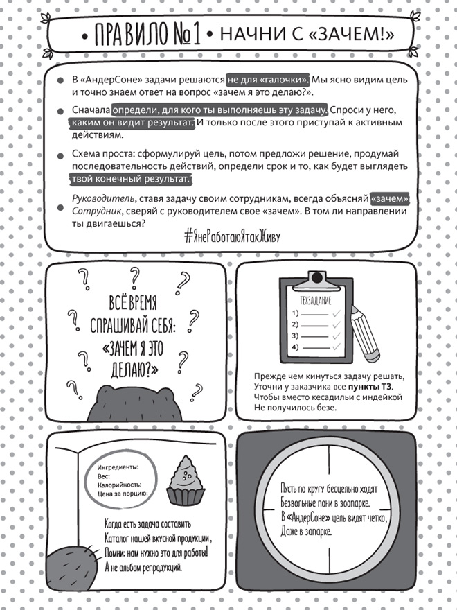 У нас получился интересный комикс. «Почему комикс?» – спросите вы? Да потому что это весело, вкусно… и при этом полезно! Прочитайте стихи, вглядитесь в смешные картинки, и вы постигнете дзен – правила работы и жизни в стиле «АндерСон».