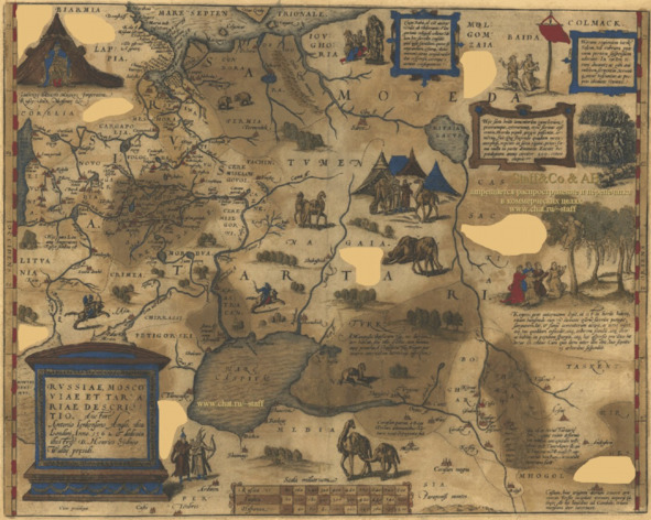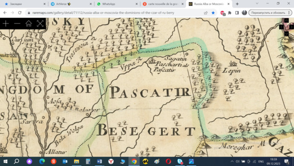Рис. 4. На этой карте в одном месте сразу три названия «Pascatir» в разных формах, расположенные также на территории исторической Башкирии. Russia Alba or Moscovia… | The Dominions of the Czar of Russia Alba or Great Duke of Moscovia in which ar the Dukedoms of Moscow, Wolodimer, Rezan, Worotin, Novogorod-Sewierski, Czernihow, Smolensko, Reschow, Twer, Novogorod-Weliki, Biele Jezora, Wologda, Ieroslaw… London / 1682. Взято: https://www.raremaps.com/gallery/detail/71112/russia-alba-or-moscovia-the-dominions-of-the-czar-of-ru-berry.