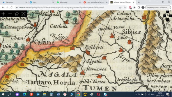 Рис. 3. Город (крепость?) с названием Паскерти (Pascherti – Паскатир?) примерно на территории совр. Республики Башкортостан. A Newe Mape of Tartary augmented by John Speede. London / 1676. Взято отсюда: https://www.raremaps.com/gallery/detail/79364/a-newe-mape-of-tartary-augmented-by-john-speede-1626-speed.