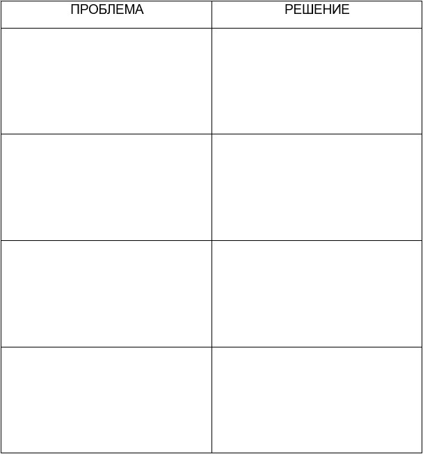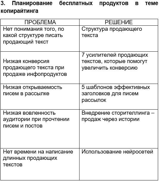 1. Таблица с проблемами вашей аудитории и их решение (ваш бесплатный продукт):