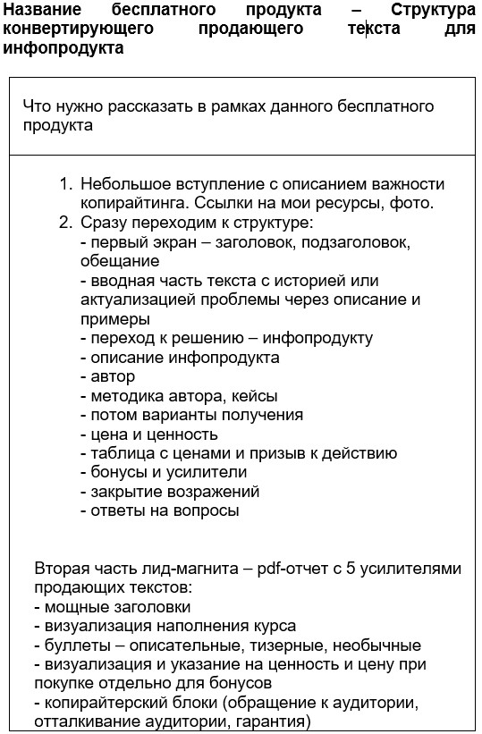 2. Рdf с усилителями продающих текстов и дополнительно инфографика со структурой продающего текста