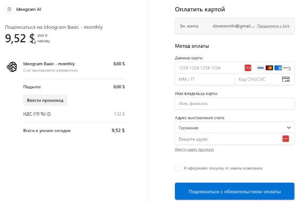 Выберите вариант и вы попадете на страницу оплаты. В большинстве сервисов оплата происходит через платежную систему Stripe: