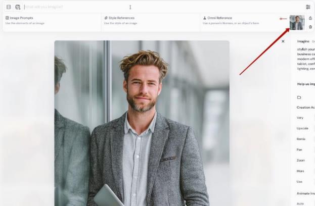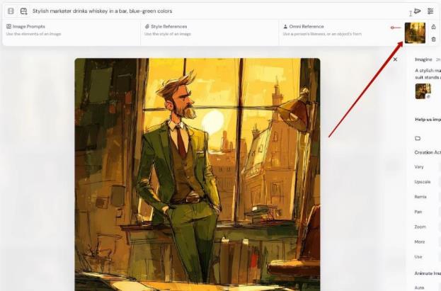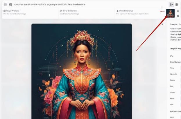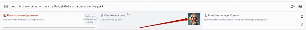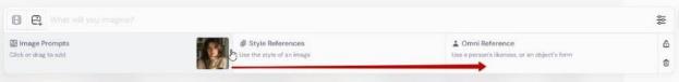 – Изображение добавится в поле ввода промпта, его нужно перетащить мышкой в графу Omni Reference: