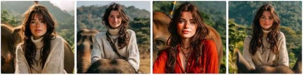 Мой запрос Молодая женщина едет по джунглям на слоне, средний план – то есть это совершенно другая обстановка.