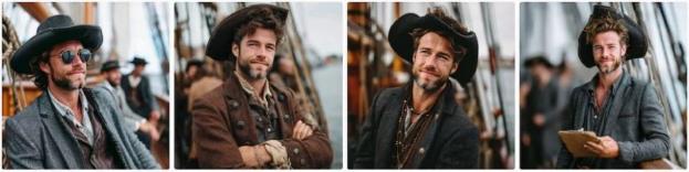 – Мой промпт Стильный молодой человек в одежде пирата на корабле: