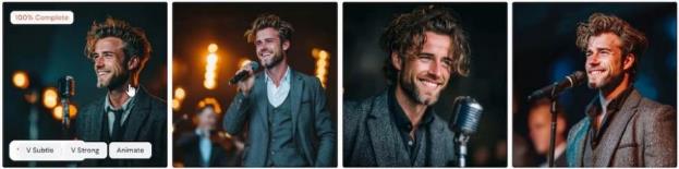 – Еще пример с тем же молодым человеком, но по другому запросу Молодой человек на сцене с мифкрофоном, эпичное фото, винтажный стиль