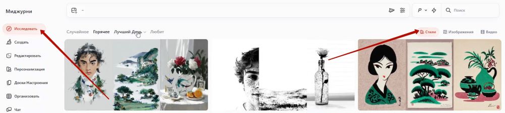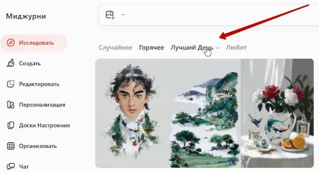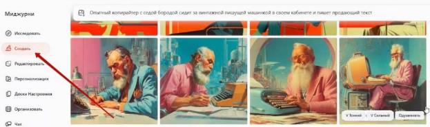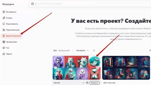 – Другой вариант создания доски настроения – с помощью уже сгенерированных картинок в Миджорни: